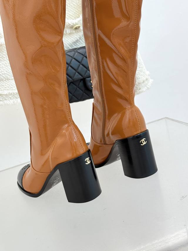 厂价p短靴 长靴 Chane*|小香经典拼色粗跟弹力靴 感受经典与潮流的激情碰撞。 这双靴子巧妙融合品牌标志性元素 以大胆而和谐的拼色设计 打破常规 鞋跟处精致