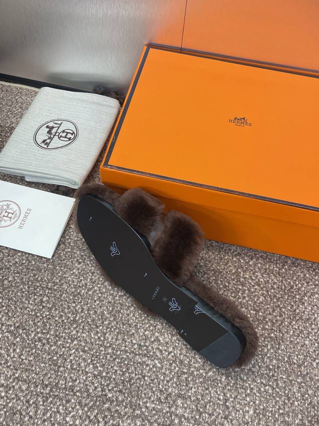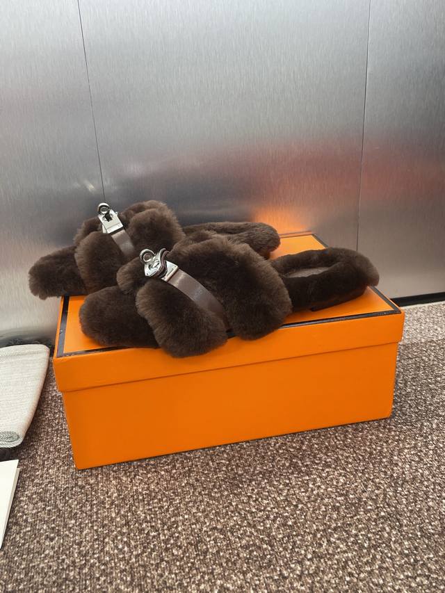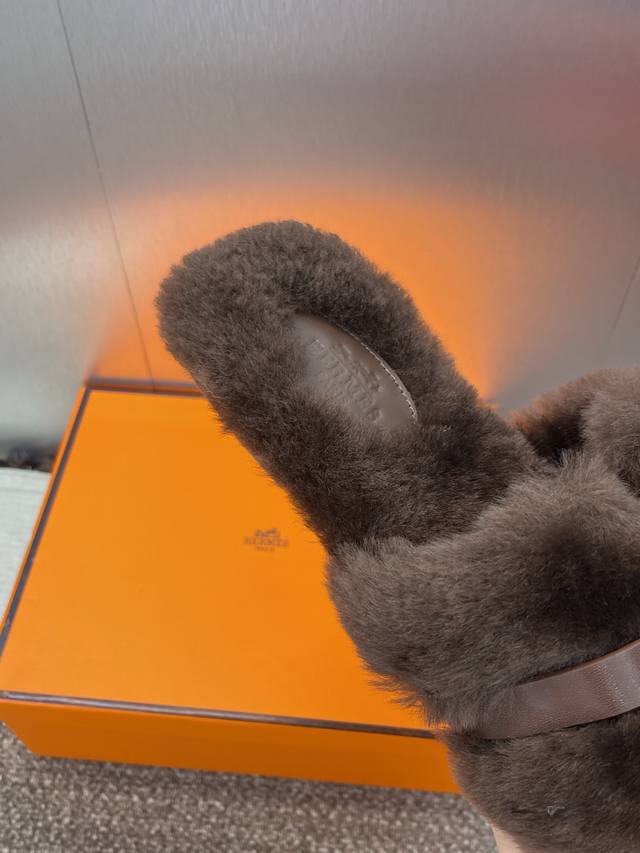高版 男码10 G032*爱马仕皮毛一体卷糕毛二舅拖 今年面料均选用a+皮毛一体卷糕毛 毛茸茸的...