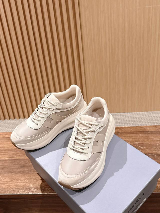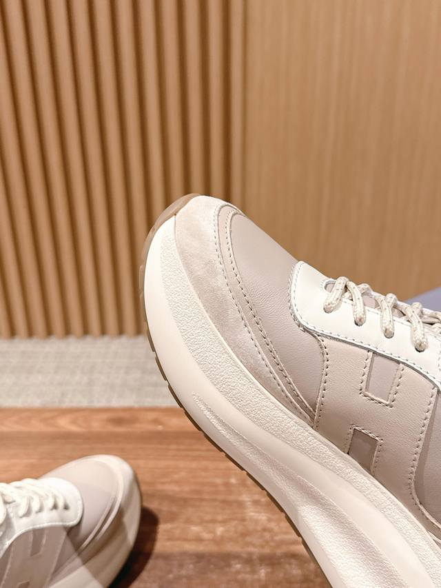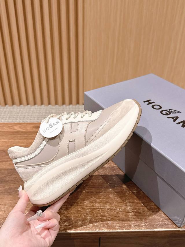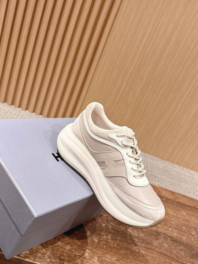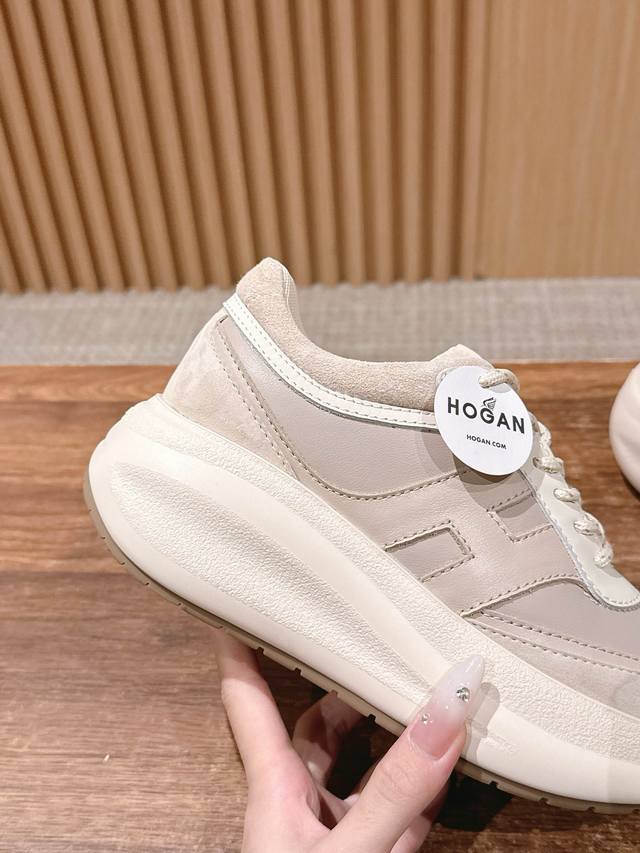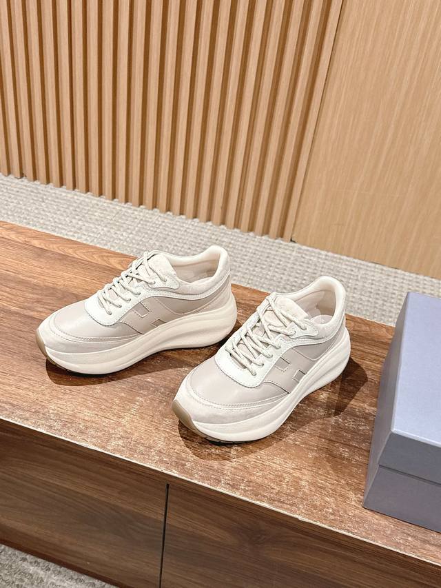 顶级版本 #豪格新款休闲厚底鞋运动鞋 7.5Cm的跟高依旧友好 以纳帕皮革拼绒面皮革制成 款式动感,鞋面线条圆润 脚感不用担心 记忆泡沫内底缓震 舒适设计超有范儿,显高又百搭,暴走不累脚