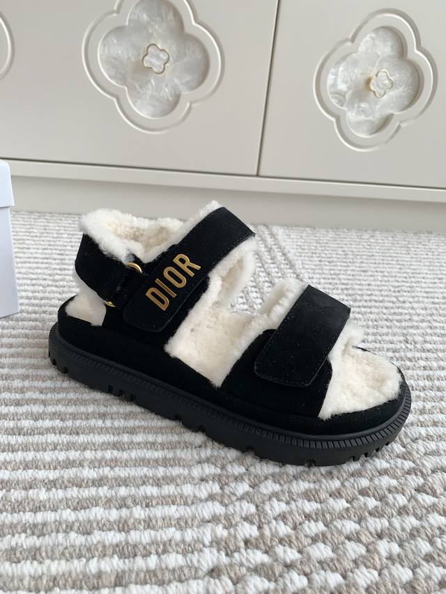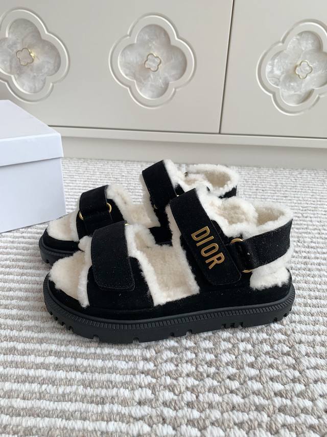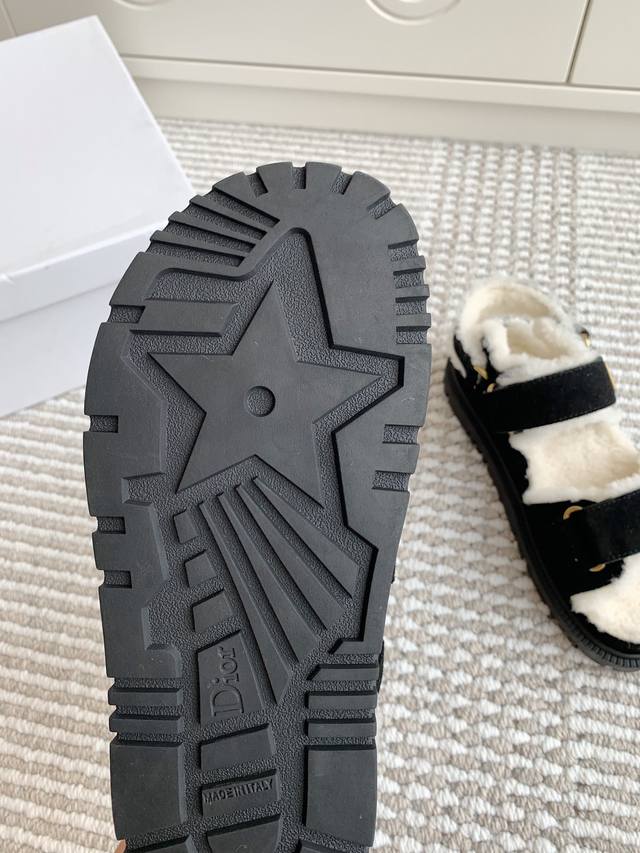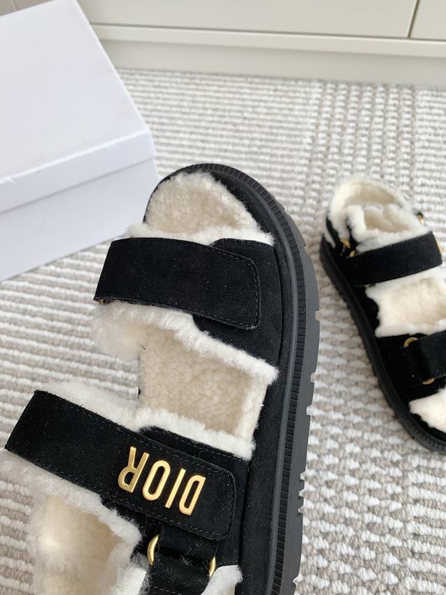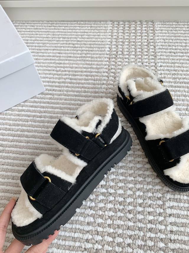 Dio Dioract 羊毛系列 泰迪魔术贴厚底凉鞋 拖鞋