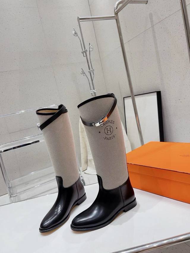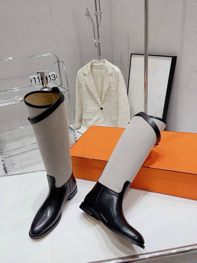 爱马仕已认证 秋冬高品质出厂顶级版本 原版购入开发! Hermes爱马仕h家 秋冬新款麻布长靴骑士靴!Jimping系列!Kelly扣经典骑士靴