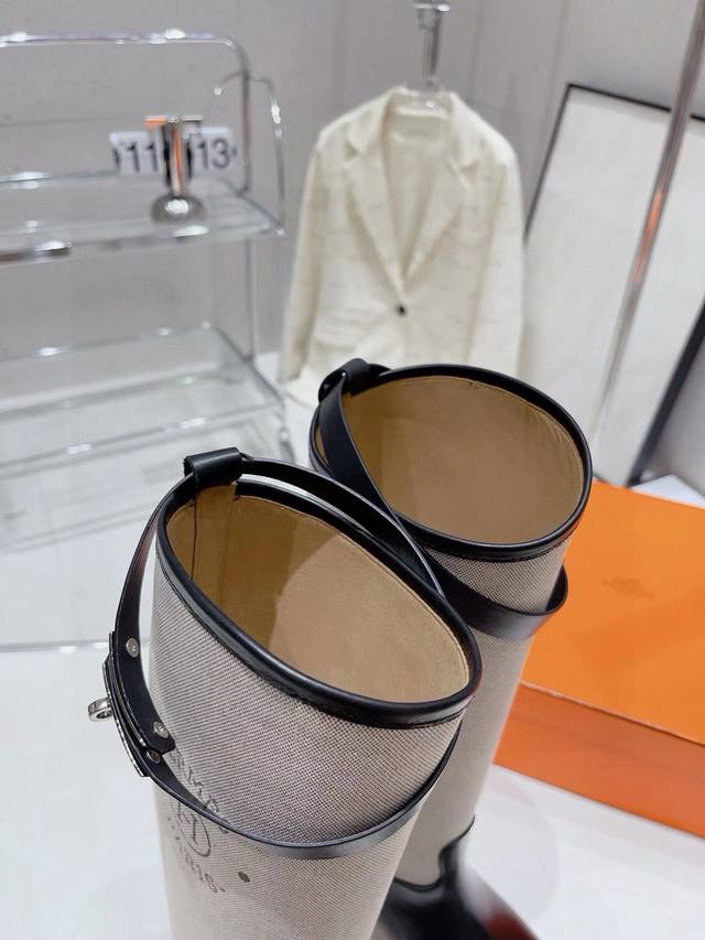 爱马仕已认证 秋冬高品质出厂顶级版本 原版购入开发! Hermes爱马仕h家 秋冬新款麻布长靴骑士靴!Jimping系列!Kelly扣经典骑士靴 H家的经典战靴