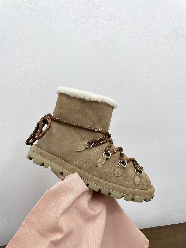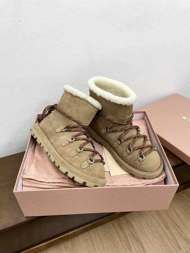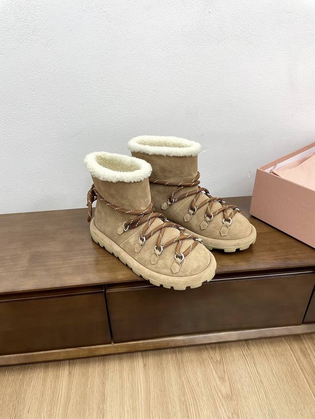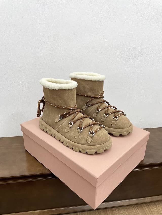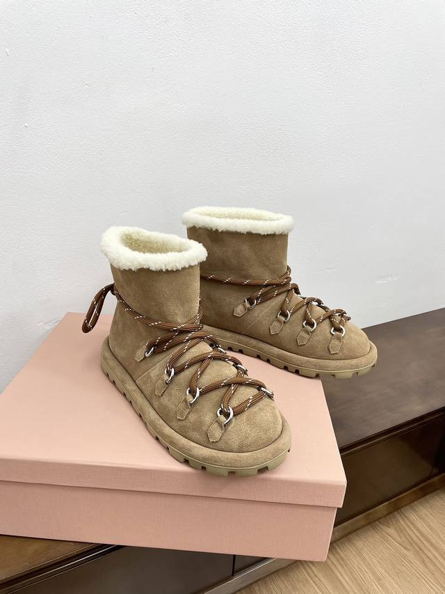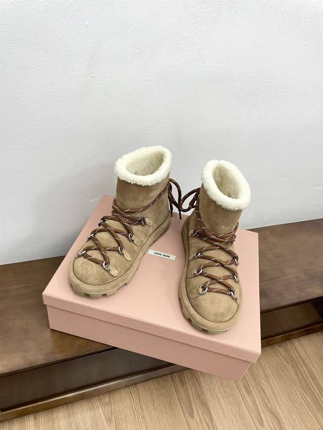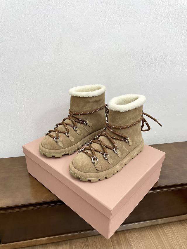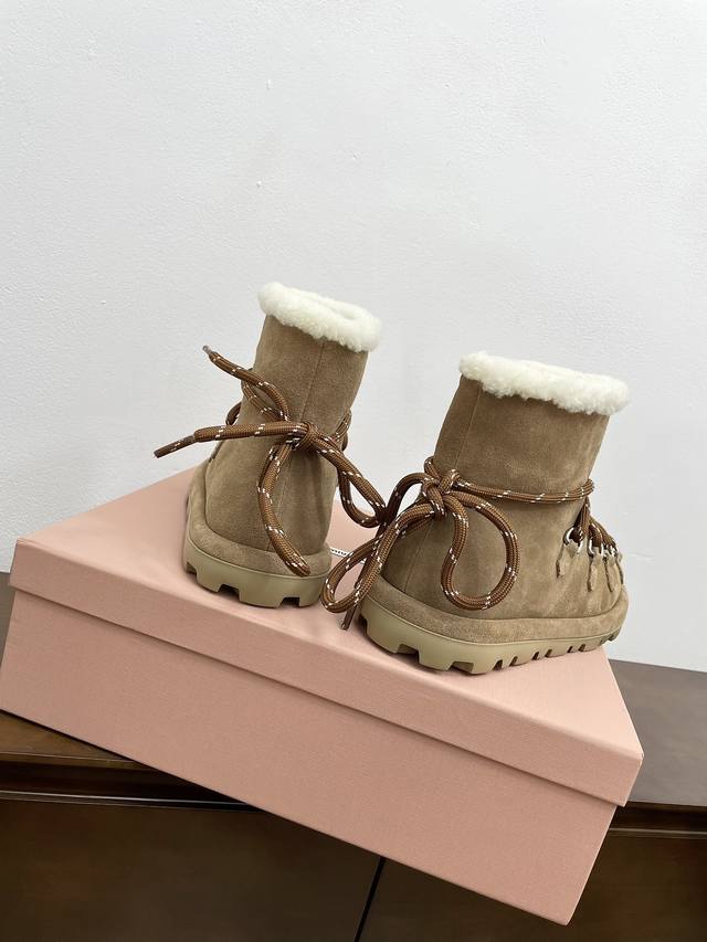 顶级版本代购级别独家首发miumiu 秋冬新款毛毛靴绑带雪地靴