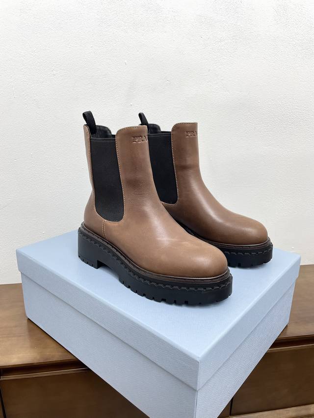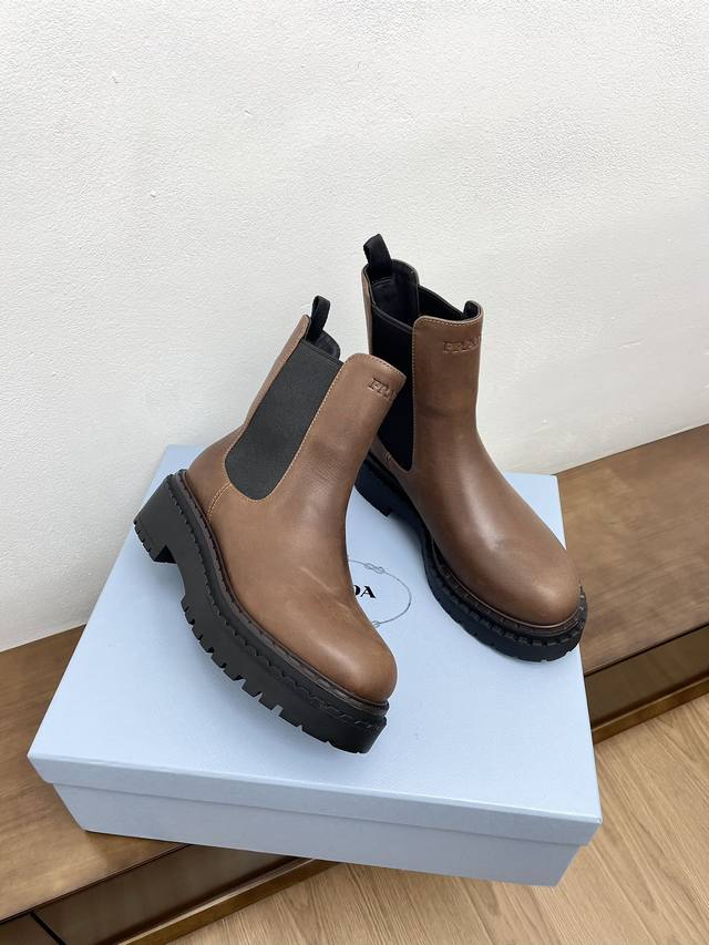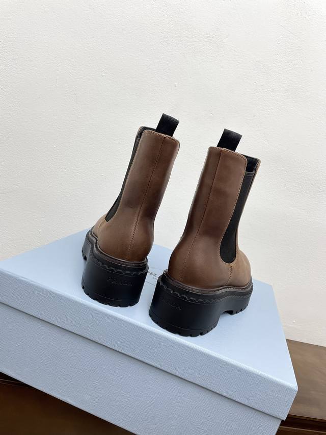 顶级版本代购级prad* 24 普拉达厚底复古切尔西靴时尚厚底休闲机车切尔西靴 独到味道,人人都爱也轻松驾驭 每年都会爆.还有就是百搭经典的鞋楦,足以征服你,穿