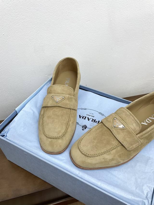 顶级版本prada普拉达 24Ss 秋冬新款三角标平底乐福鞋