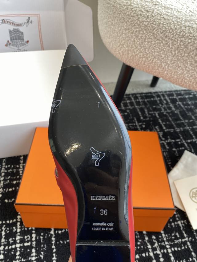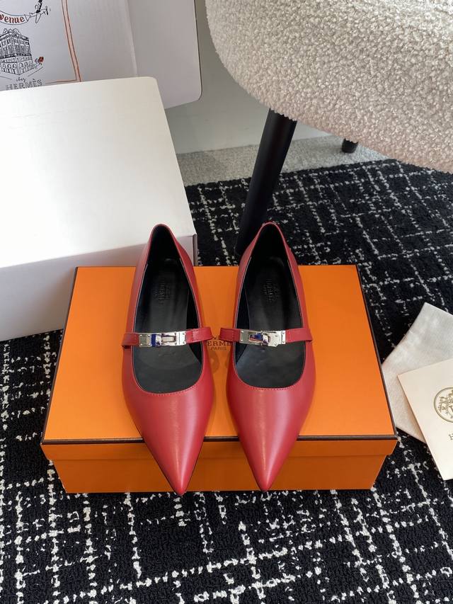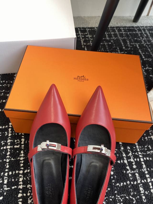 Hermes爱马仕 25ss 春夏最新kelly扣尖头猫跟时装鞋