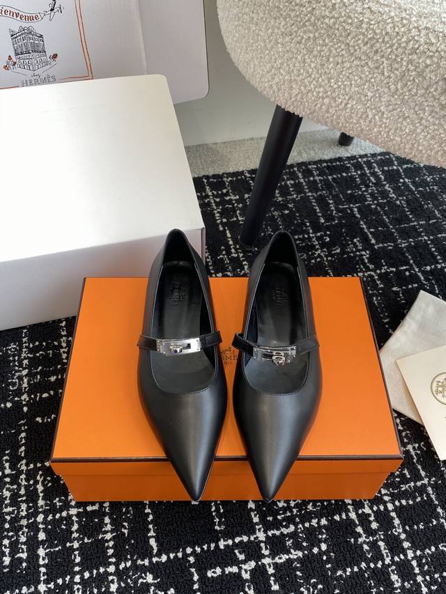 东莞代购级 官网同步盒包装 Hermes爱马仕 25ss 春夏最新kelly扣尖头猫跟时装鞋 柜柜超难配货 经典的尖头版型 搭配极具辨识度的马家五金扣 上脚超级