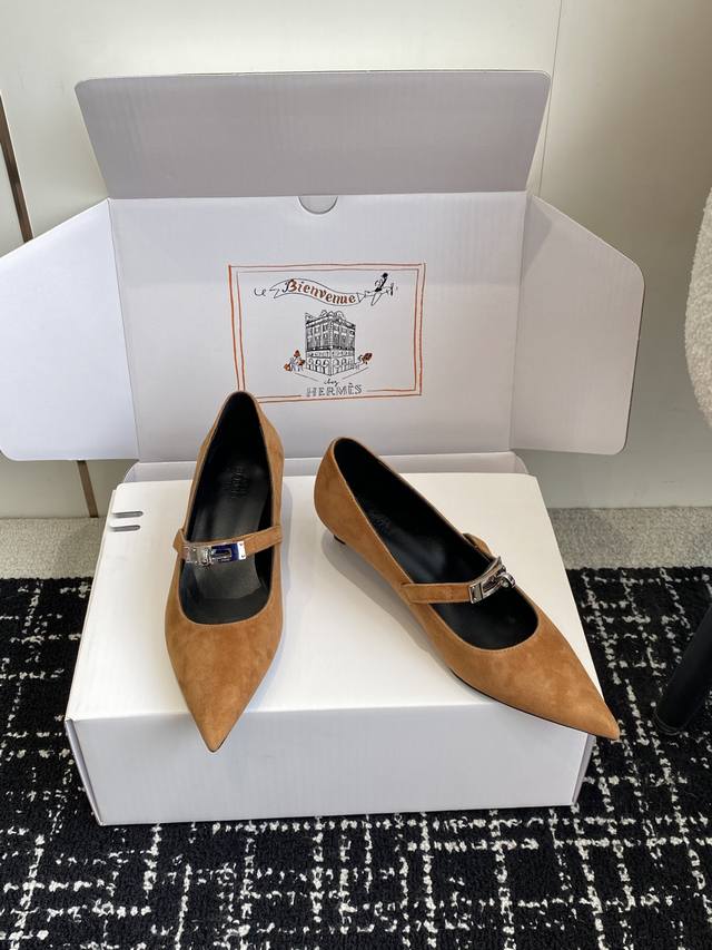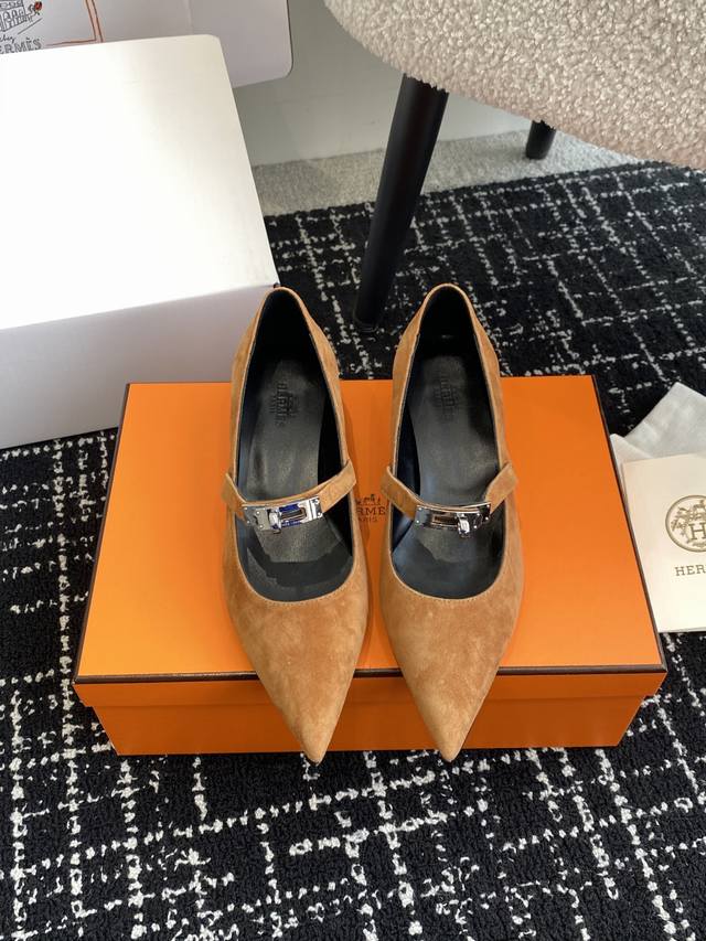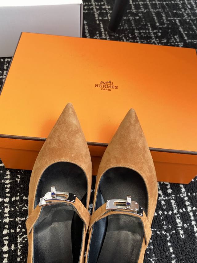 Hermes爱马仕 25ss 春夏最新kelly扣尖头猫跟时装鞋