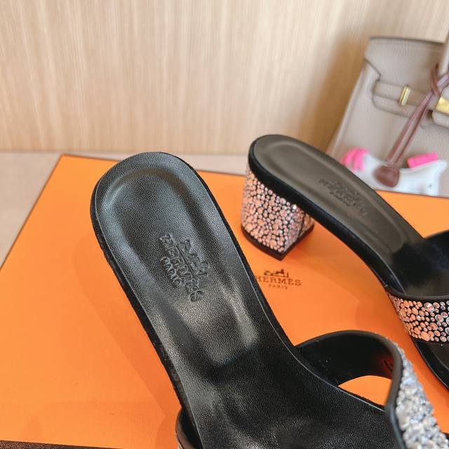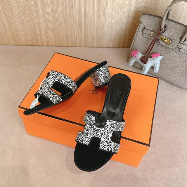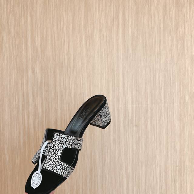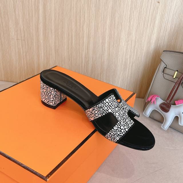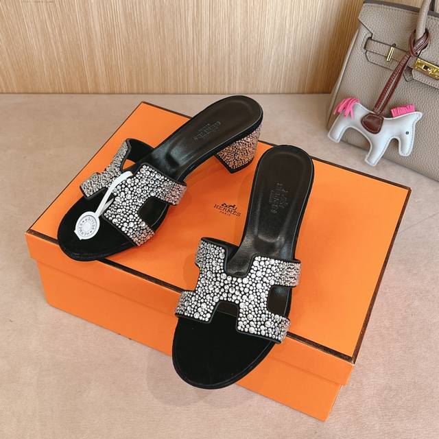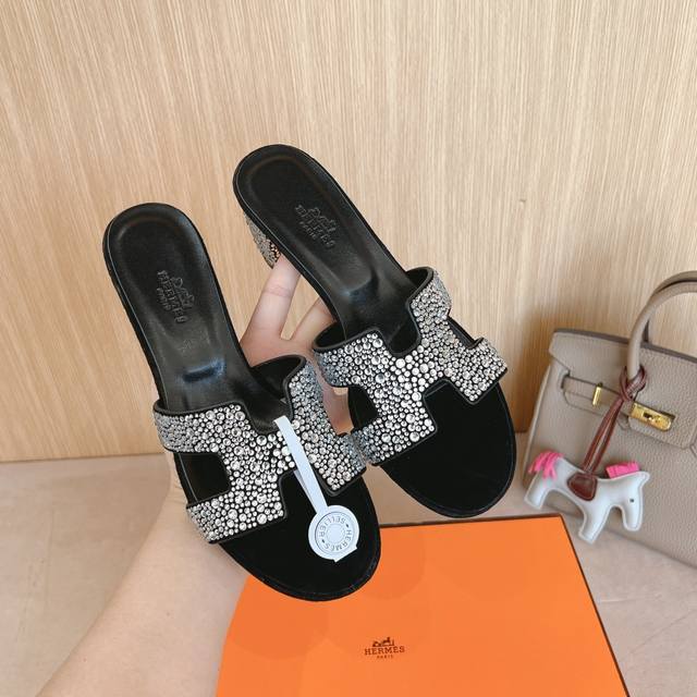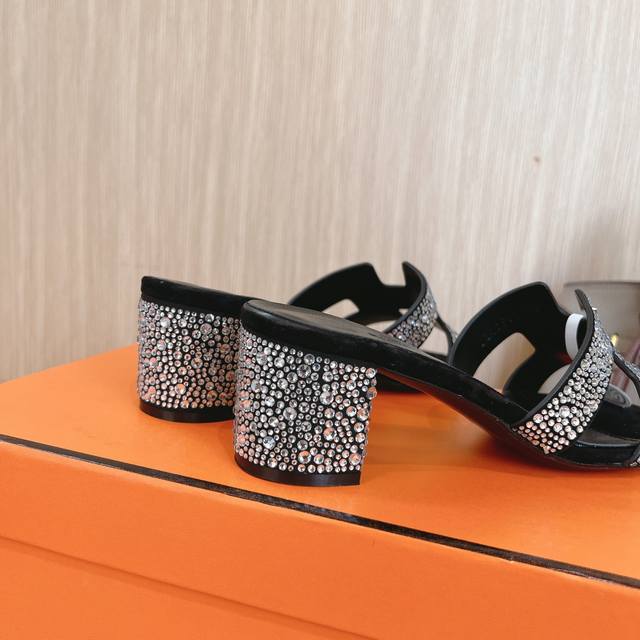 / 中跟钻面出厂价 Hermes 爱马仕H拖鞋Oasis 凉鞋系列 时尚又百搭 超级舒服 每个细节都做到极致 原版swift小牛皮 原版1:1独家私模鞋面 原版真皮