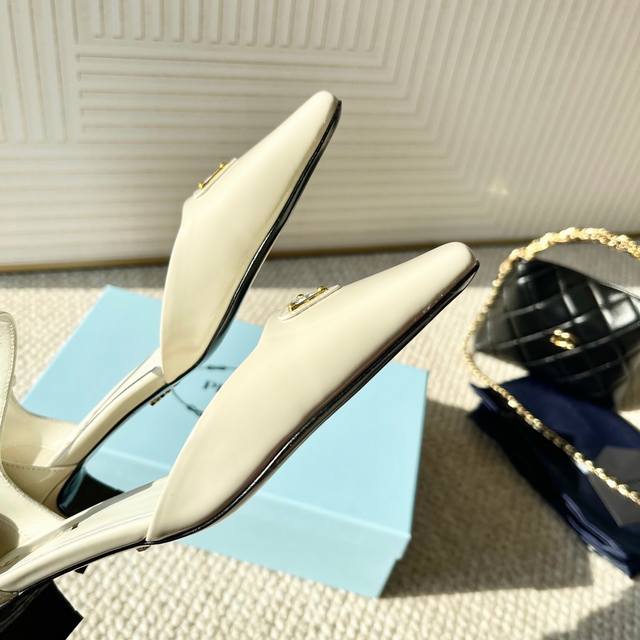Prada普拉达25年新款 方头小矮跟单鞋 中空凉鞋