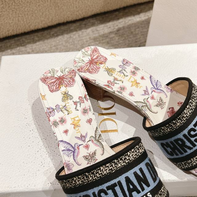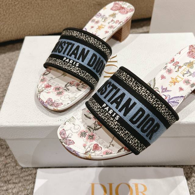 新配色 』经典的 Dway 凉拖饰以白色多色Amour 1947主题,其田园诗般的心形装饰着House符号和迪奥先生所珍视的代码,并以迪奥先生的风格为重音十字绣效果的复古美学。蓝色鞋面绣有Christian迪奥 Paris签名,立即识别触感,而简约的轮廓将轻松滑入,完成悠闲的服装。