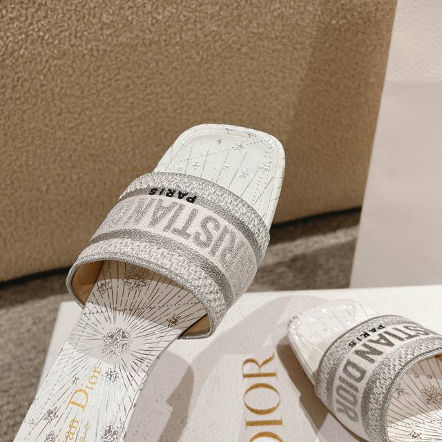 新配色 』经典的 Dway 凉拖饰以金属色的迪奥星体图案,展示了Serpens星座和月亮的相位,以颂扬迪奥先生对占星术的热情。鞋面绣有Christian迪奥 Paris签名的金色金属线增添了一种即时可识别的触感。流线型鞋很容易穿上,提供毫不费力的风格。这款鞋子可以与其他迪奥 Astral作品搭配。