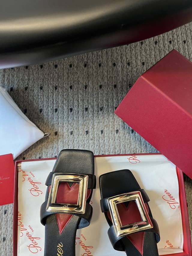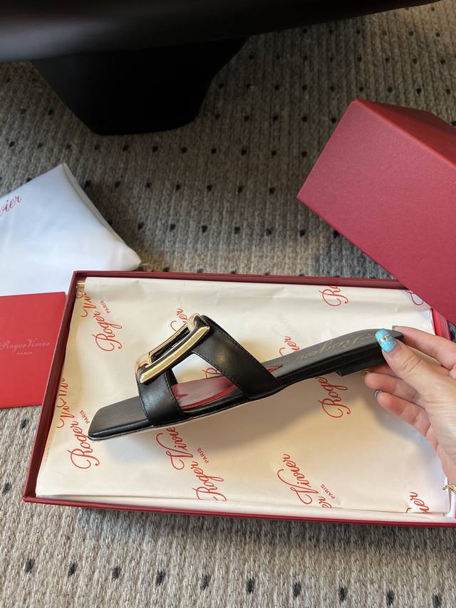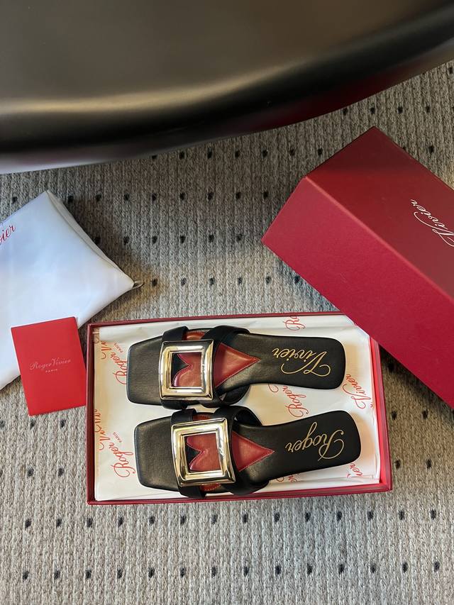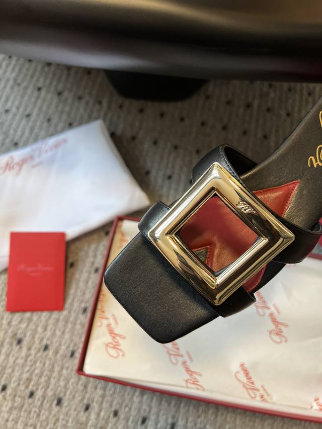 代购级别 Roger vivie*24 早春 方头方扣凉拖