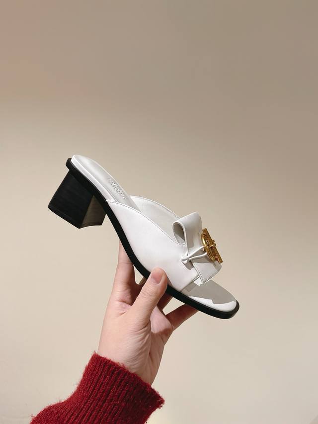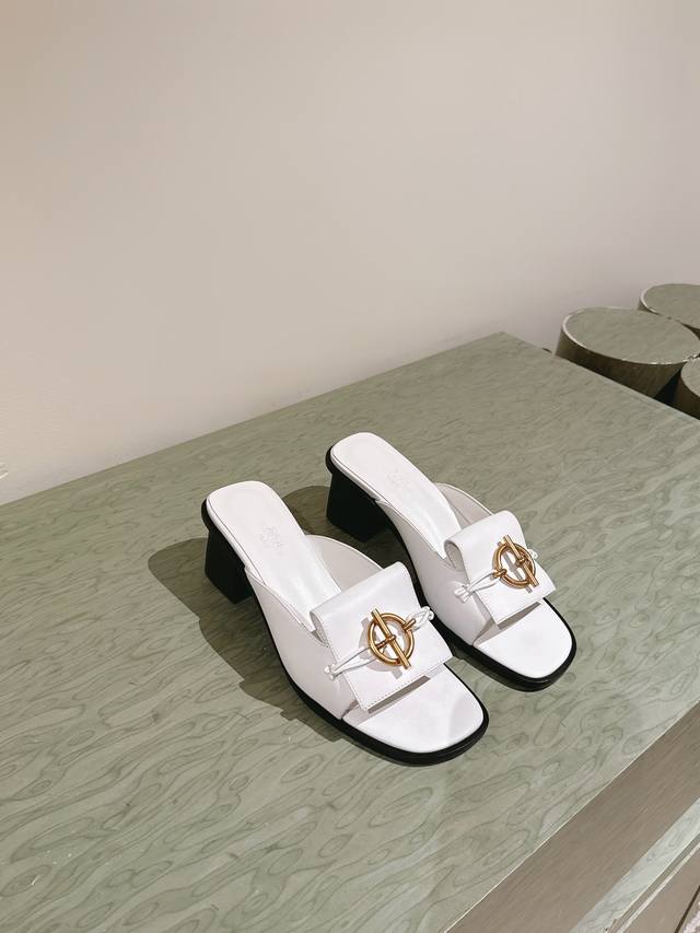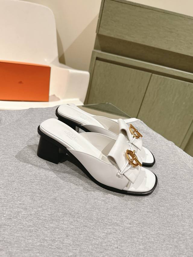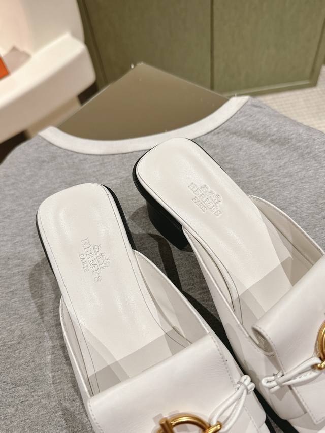 爱马仕新扣平底拖鞋 好穿百搭,夏日必备高端工具鞋 鞋面小牛皮&定制牛仔布面,内里垫脚小牛皮, 意大利进口牛皮底和牛皮沿条