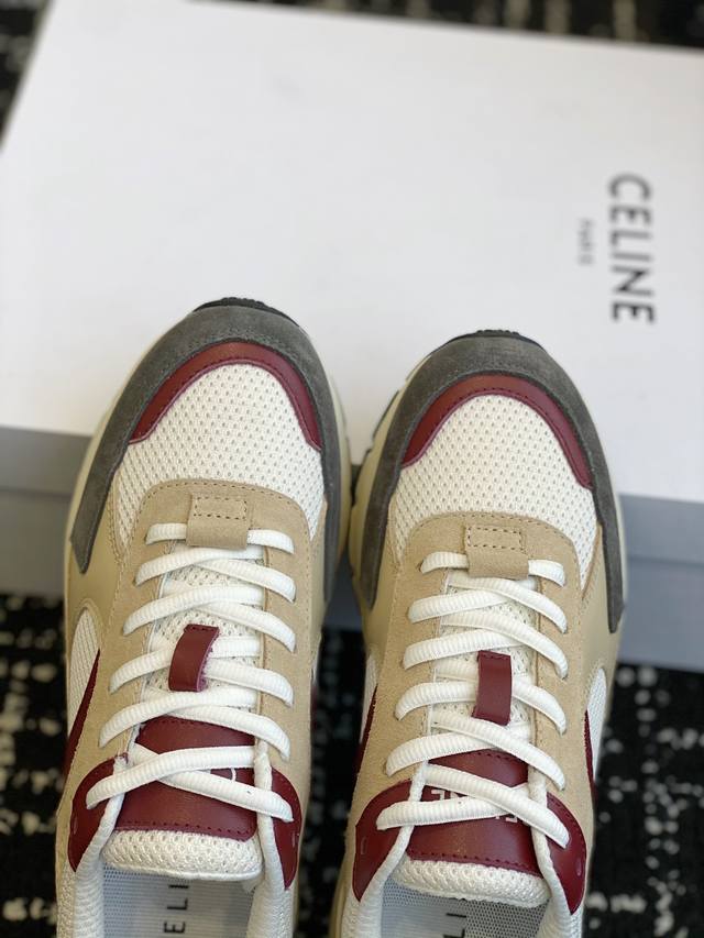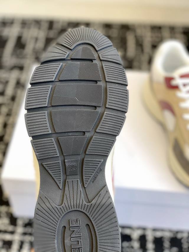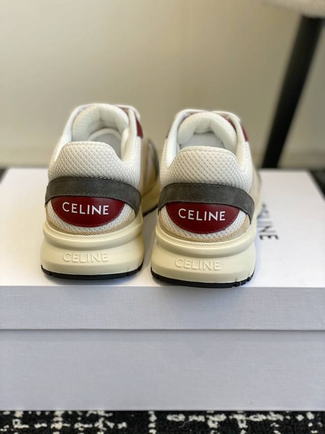 代购级 CELINE思琳赛琳CELINE RUNNER CR-03运动鞋 鞋舌和鞋后帮饰有CELINE标志运动鞋侧面凹印CR-03字样鞋后帮和侧面压印CELIN