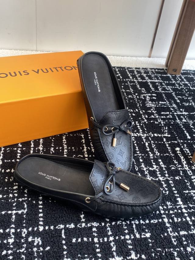 Louis Vuitton GLORIA平底 豆豆鞋 半拖 采用优质牛皮 轻盈舒适的莫卡辛结构搭配手缝鞋面