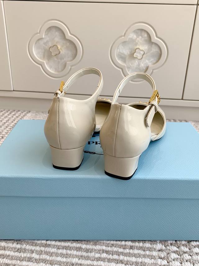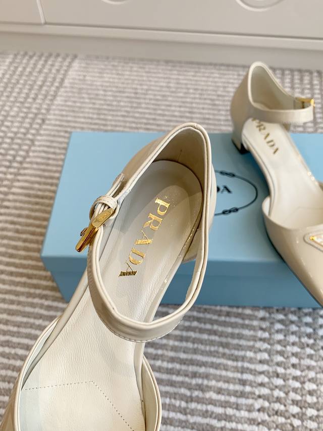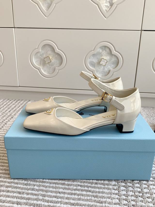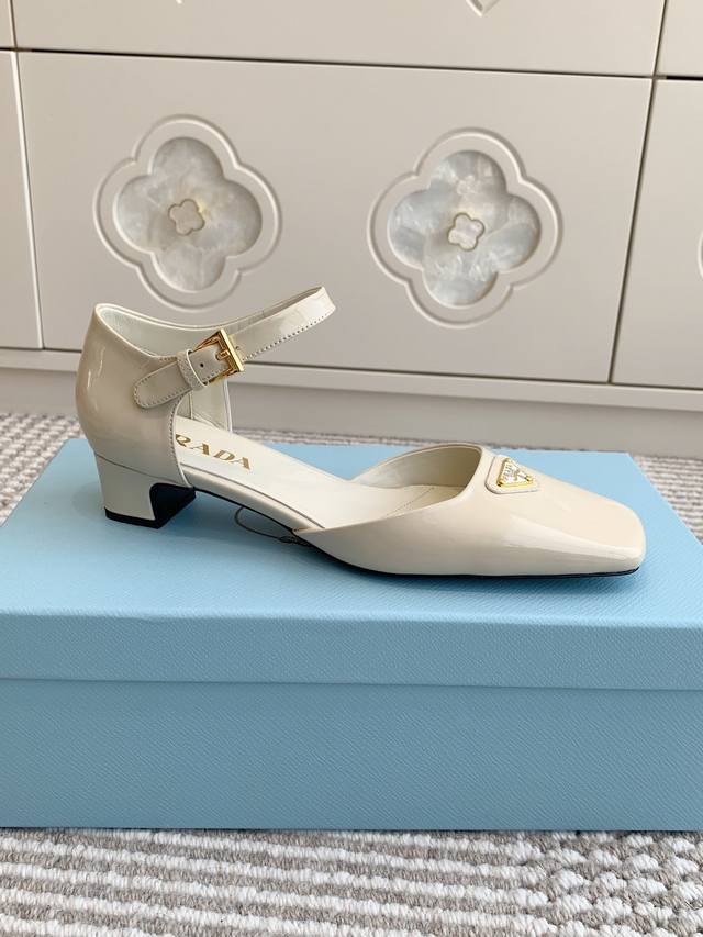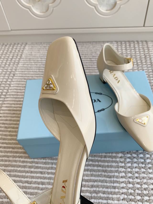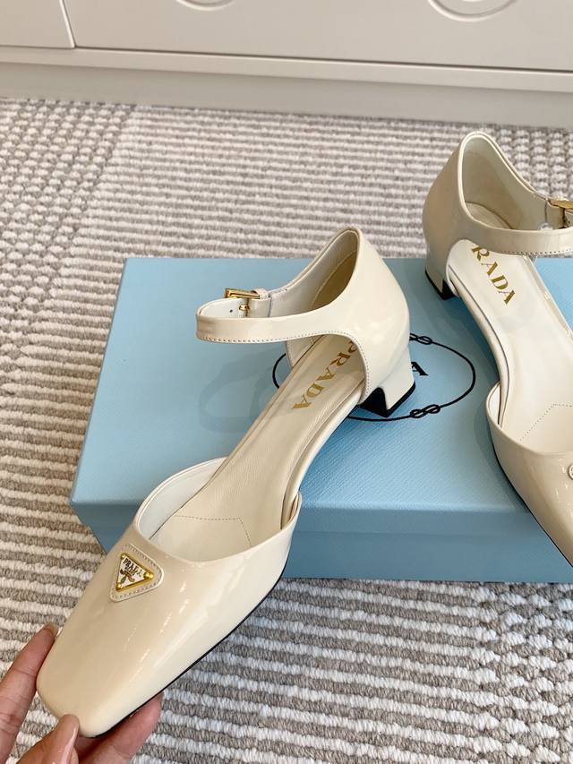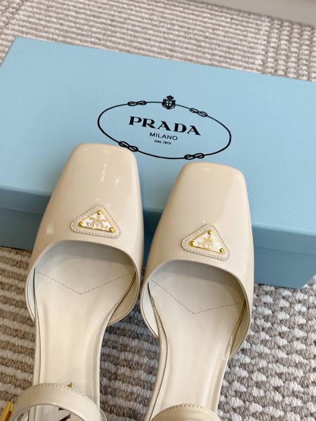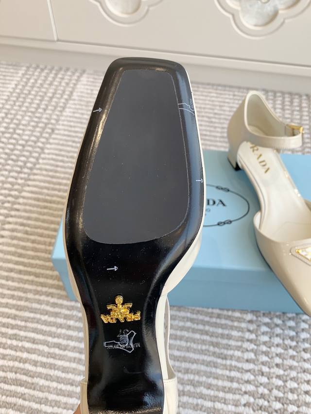 / 代购级Prada普拉达2025新款三角标粗跟方头中空凉鞋 单鞋|顶级代购级别品质材质与工艺:原版进口超软牛漆皮 小牛皮混种羊皮内里进口真皮注塑大底size:35