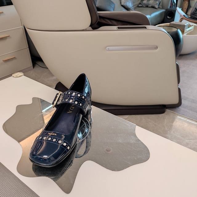 制作细节:Prada2025年新款圆头玛丽珍端庄风单鞋,因为照足原版做法,鞋面做法采用纯手工撞钉冲孔制作装饰带饰于鞋面与脚背处,再以金属搭扣配于鞋带处,拼接的鞋面设计,浅金色Logo标识印于鞋头正中心,造价己超出预算,材料浪费与报废率超高。内行人看鞋子、格位、材料,一眼便心有分晓!!
