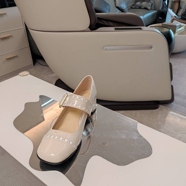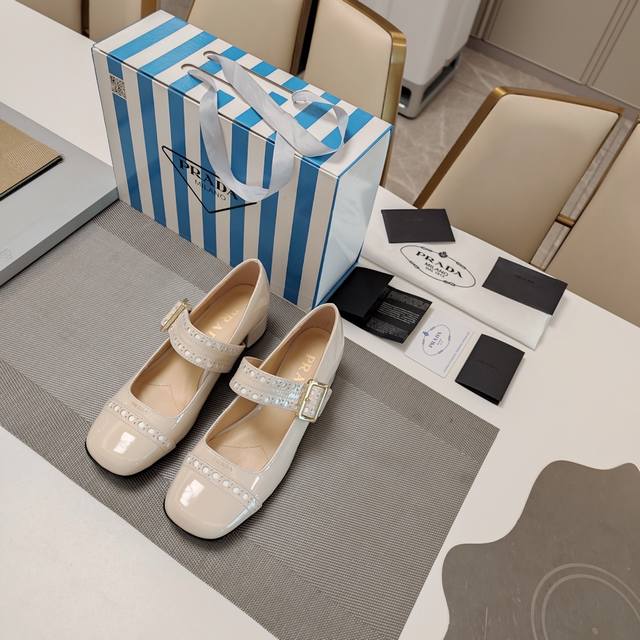 制作细节:Prada2025年新款圆头玛丽珍端庄风单鞋,因为照足原版做法,鞋面做法采用纯手工撞钉冲孔制作装饰带饰于鞋面与脚背处,再以金属搭扣配于鞋带处,拼接的鞋面设计,浅金色Logo标识印于鞋头正中心,造价己超出预算,材料浪费与报废率超高。内行人看鞋子、格位、材料,一眼便心有分晓!!
