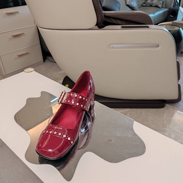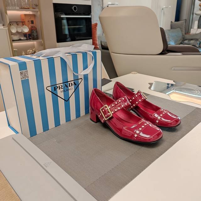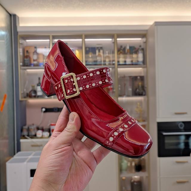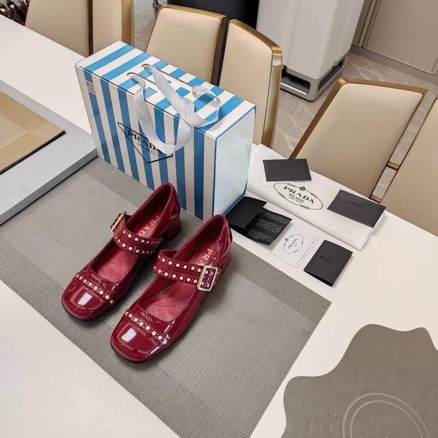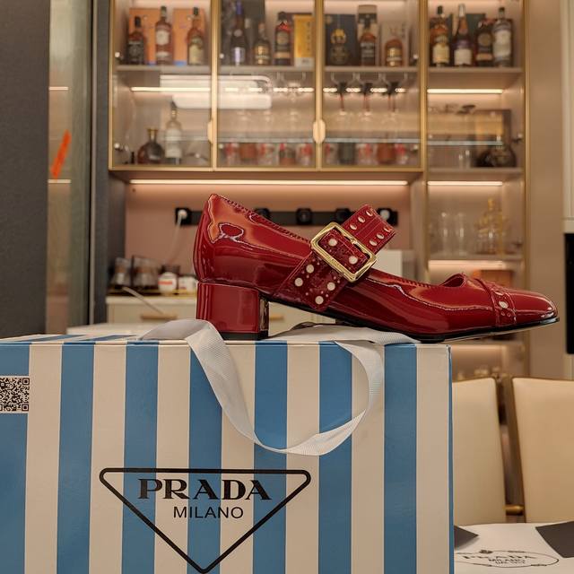 制作细节:Prada2025年新款圆头玛丽珍端庄风单鞋,因为照足原版做法,鞋面做法采用纯手工撞钉冲孔制作装饰带饰于鞋面与脚背处,再以金属搭扣配于鞋带处,拼接的鞋面设计,浅金色Logo标识印于鞋头正中心,造价己超出预算,材料浪费与报废率超高。内行人看鞋子、格位、材料,一眼便心有分晓!!