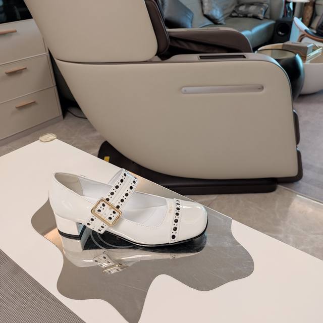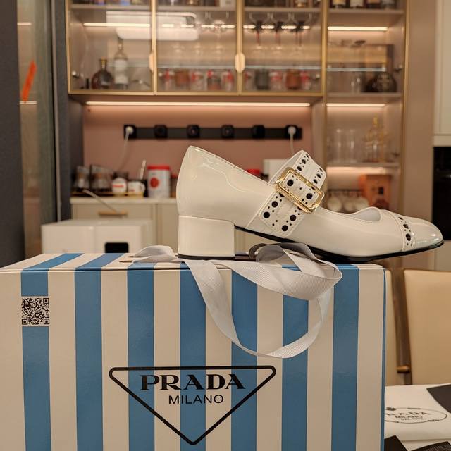 制作细节:Prada2025年新款圆头玛丽珍端庄风单鞋,因为照足原版做法,鞋面做法采用纯手工撞钉冲孔制作装饰带饰于鞋面与脚背处,再以金属搭扣配于鞋带处,拼接的鞋面设计,浅金色Logo标识印于鞋头正中心,造价己超出预算,材料浪费与报废率超高。内行人看鞋子、格位、材料,一眼便心有分晓!!