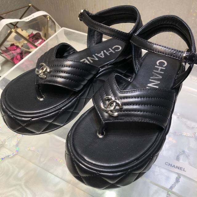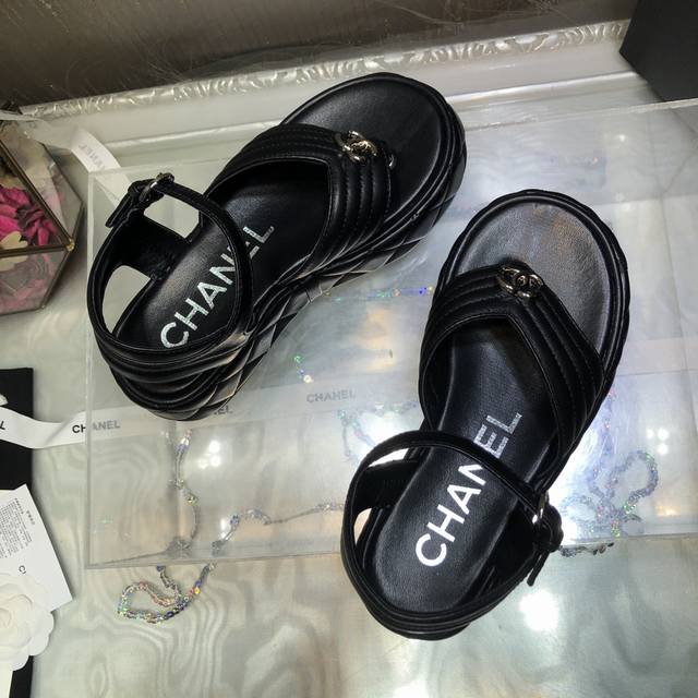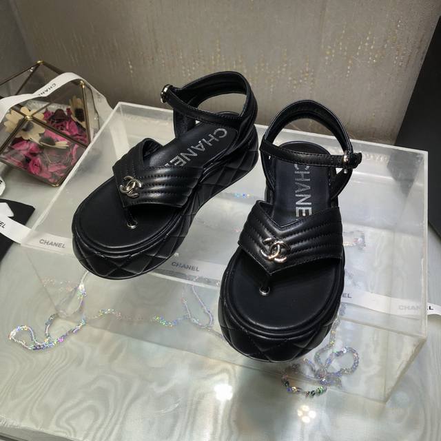 凉鞋 顶级品质 Chane*25C小香春夏新品夹趾厚底休闲凉鞋全网最火的一款凉鞋 !可想而知小香控不可错过的 颜值与舒适并存 ~简约又百搭!