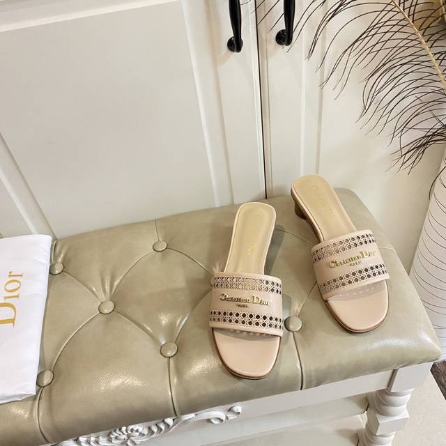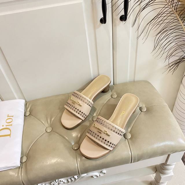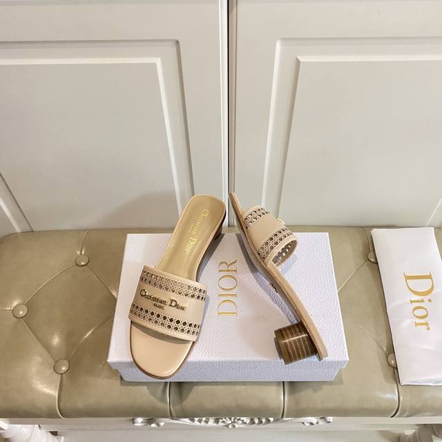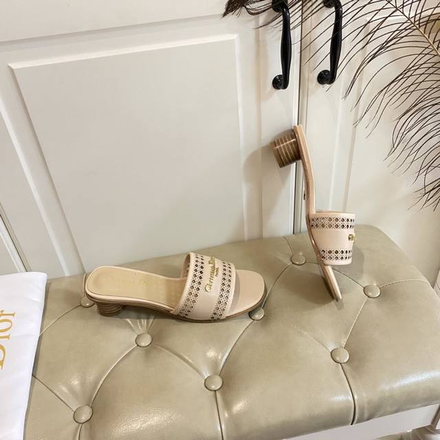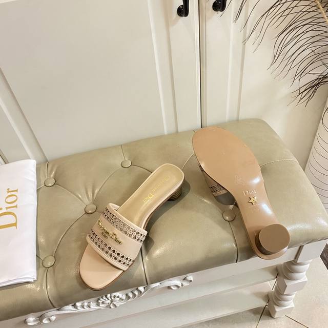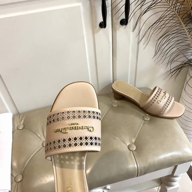 出厂价橡胶底 ,真皮底 ,迪奥Dior2025春夏新款高跟拖鞋,镂空网格鞋面,羊皮里,35-41码 42,43码定做不退换