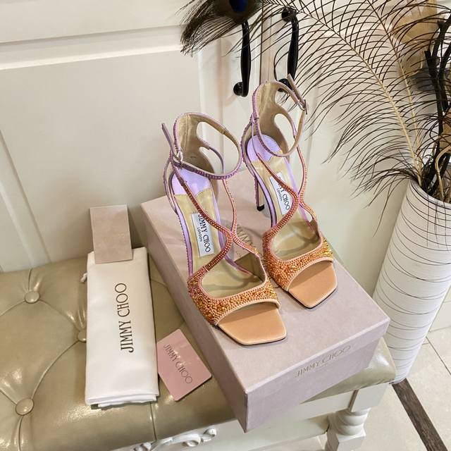 出厂价 ,吉米周JlMMY CHOO女王范炸街高跟凉鞋,真丝绸缎烫钻面,羊皮里,真皮底,10cm跟高,35-39码 40,41,42码定做不退换