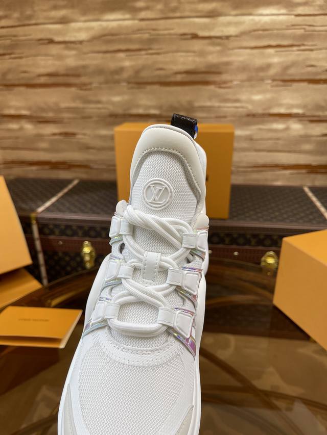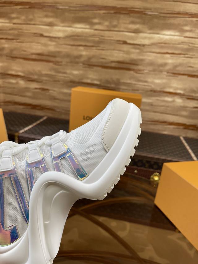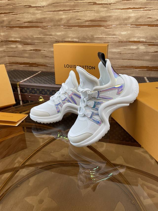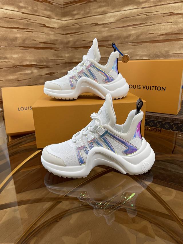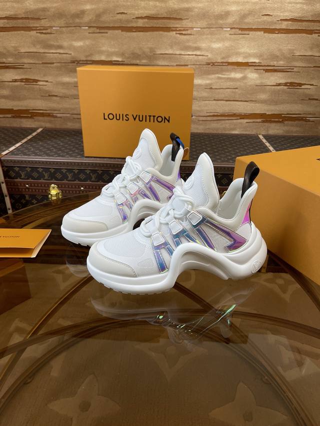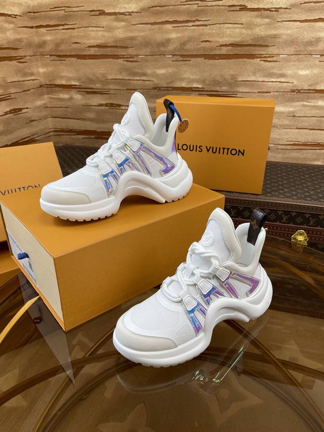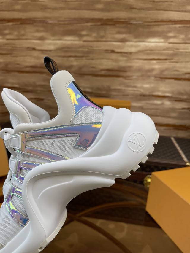 出厂价 顶级版本2024新款LV花式熊猫扣子款 Archlight 驴牌五金休闲运动老爹鞋后增跟高约5.5cm,大底最高度厚约8mm