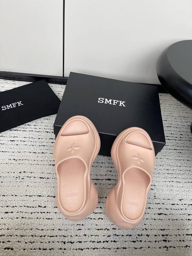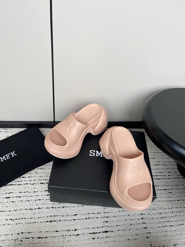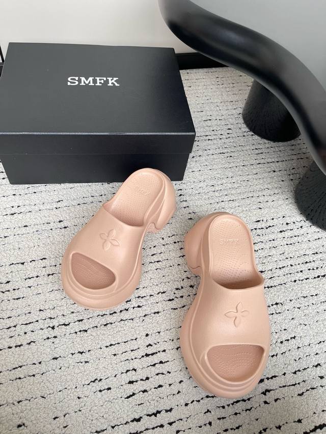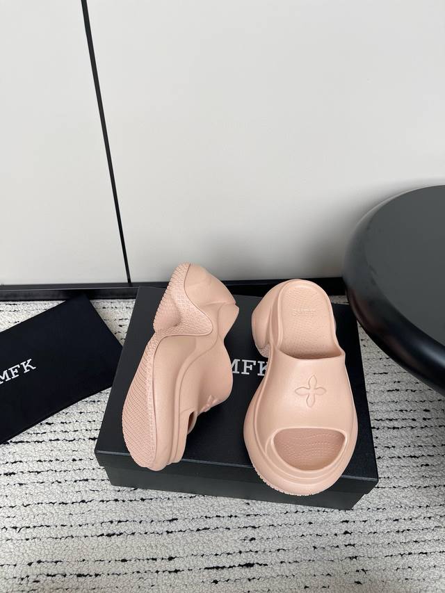24ss 小众潮牌爆款没计感浮雕一字厚底拖鞋