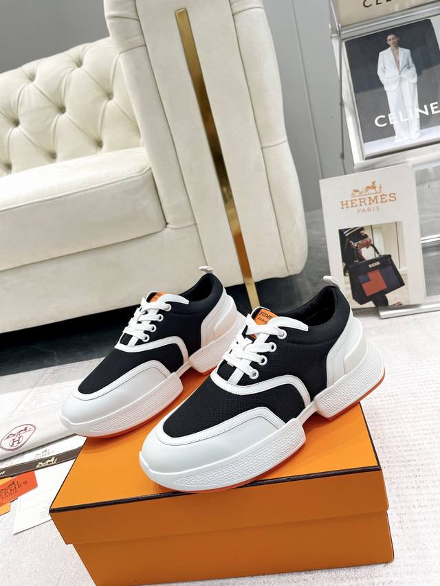 Hermès 爱马仕情侣新款小蛮腰,北美首发,增高-流鞋!瞬间显得腿细了很多,跟高5CM,爱马仕新款熊猫gigs 面包鞋可可爱爱。脚感超级舒服百分百