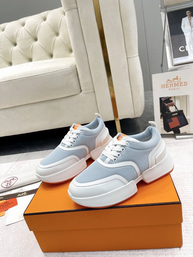 Hermès 爱马仕情侣新款小蛮腰,北美首发,增高-流鞋!瞬间显得腿细了很多,跟高5CM,爱马仕新款熊猫gigs 面包鞋可可爱爱。脚感超级舒服百分百