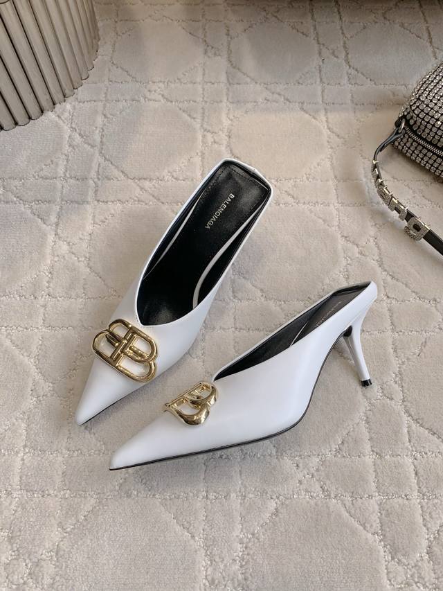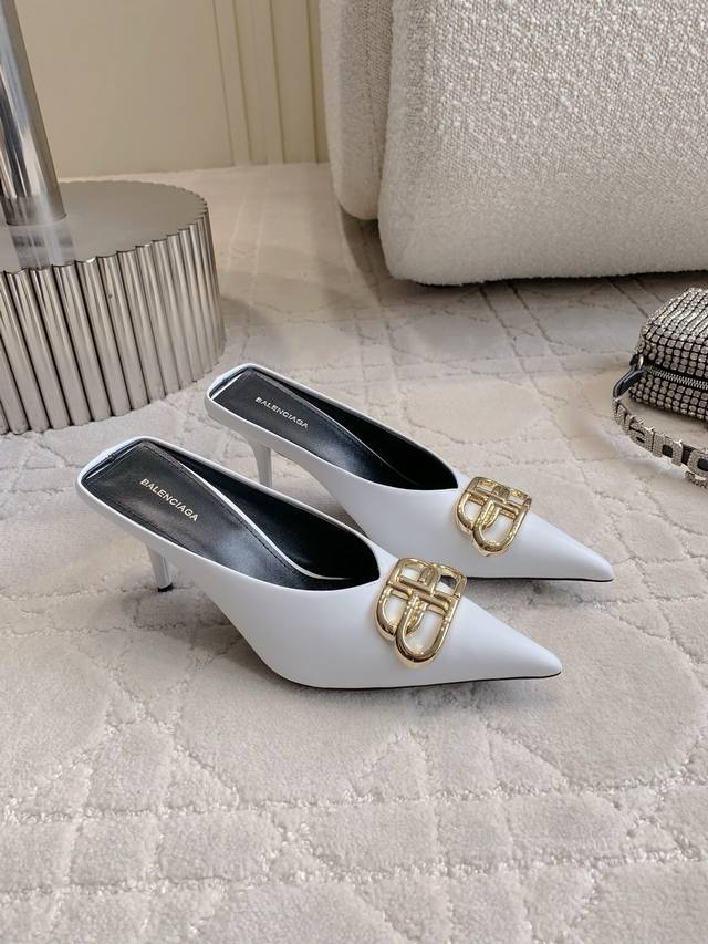 Balancing*经典款高跟穆勒半拖鞋 小尖头设计拉长腿部线条 经典双B扣装饰大气又耐看