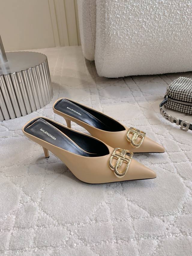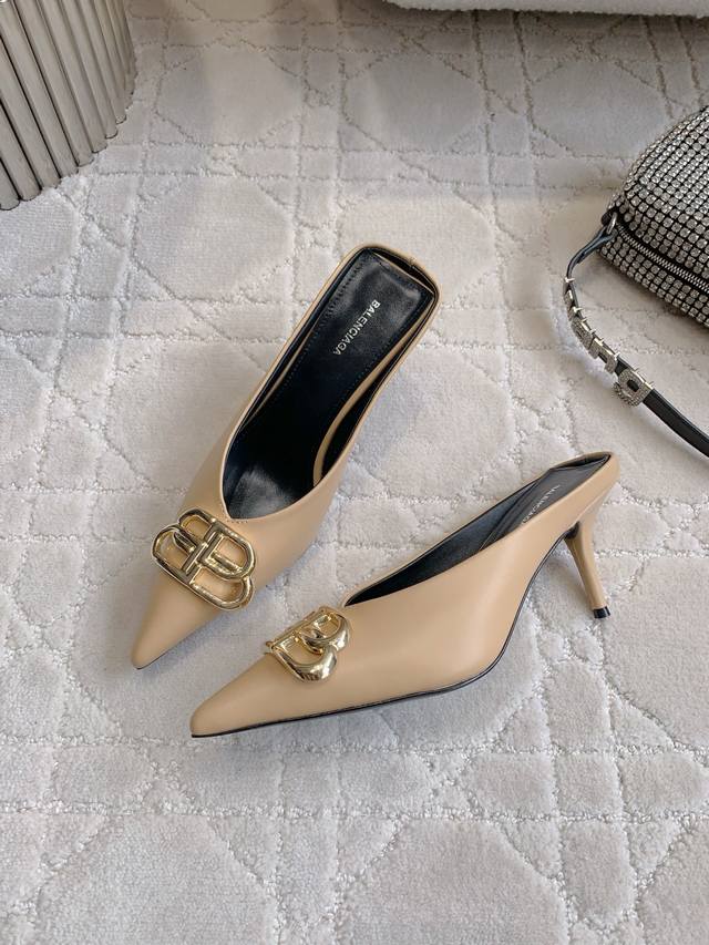 出厂价 Balancing*经典款高跟穆勒半拖鞋 小尖头设计拉长腿部线条 经典双B扣装饰大气又耐看 鞋面小牛皮 内里垫脚羊皮 意大利真皮大底 跟高7cm 尺码3