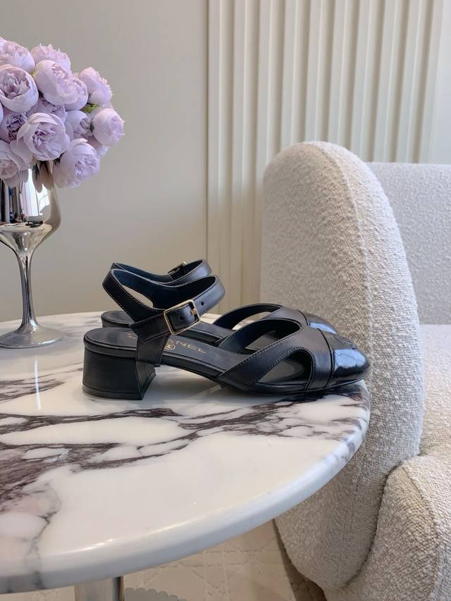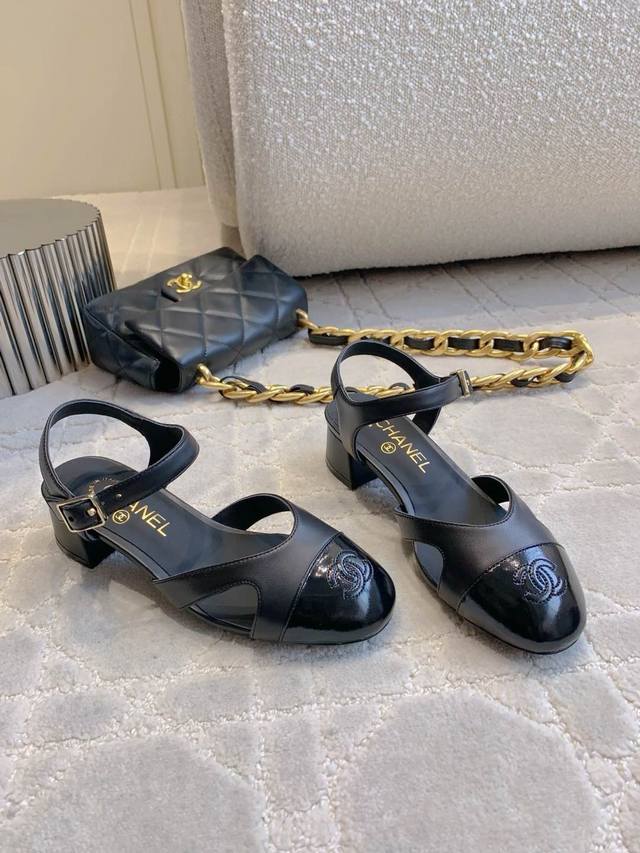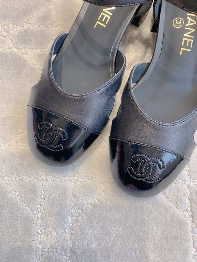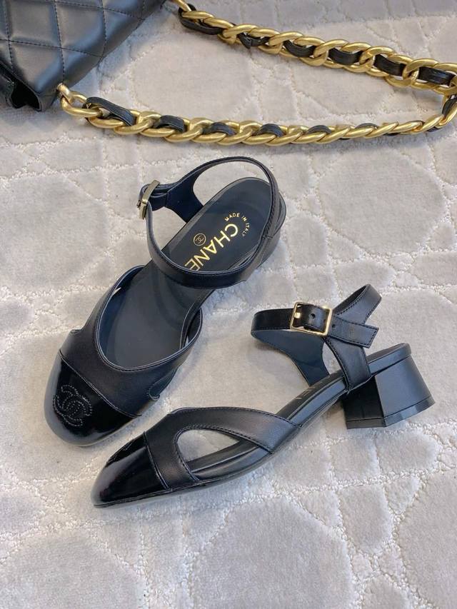 高版本 经典之作,代购级别 CHA最值得拥有的经典款 粗跟方头拼色百搭高跟后空女凉鞋...