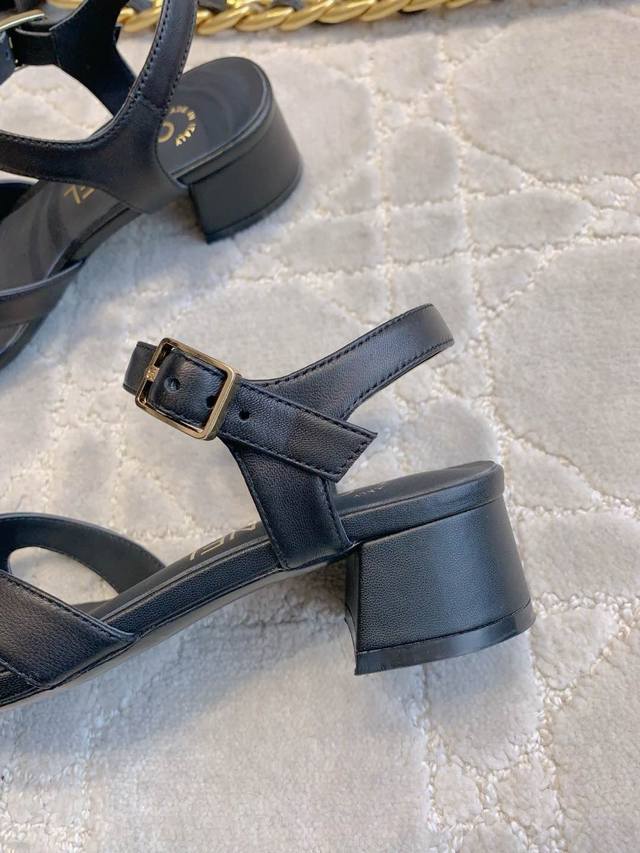 / 出厂价 CHANE*新款sling back粗跟凉鞋 经典简约百搭 好穿不过时 经典双C刺绣尽显精致 鞋面超软羊皮 内里垫脚羊皮 意大利真皮大底 跟高3.5cm