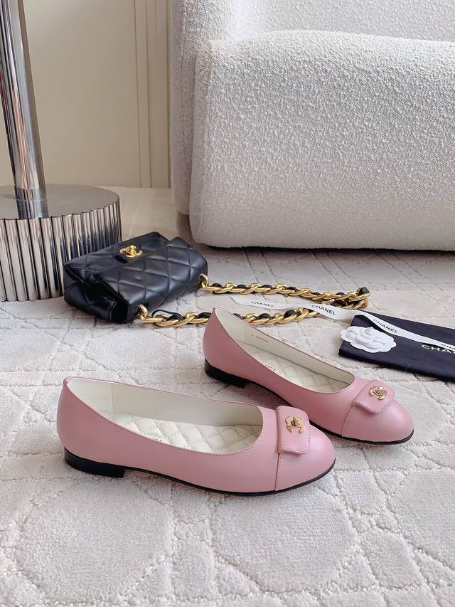 Chane* 新款翻盖锁扣平底单鞋 经典双C锁扣点缀好看又复古 永不过时的单品 推荐!