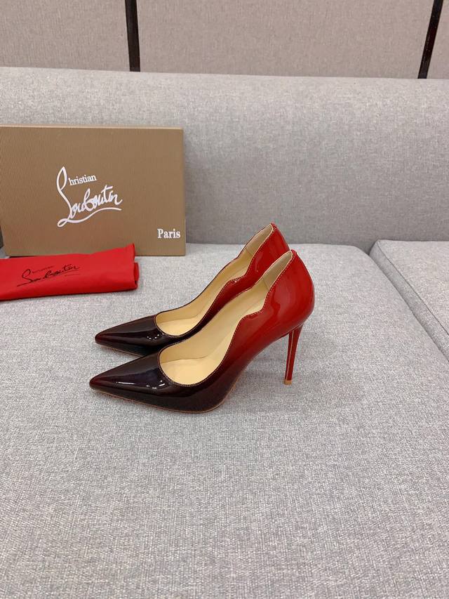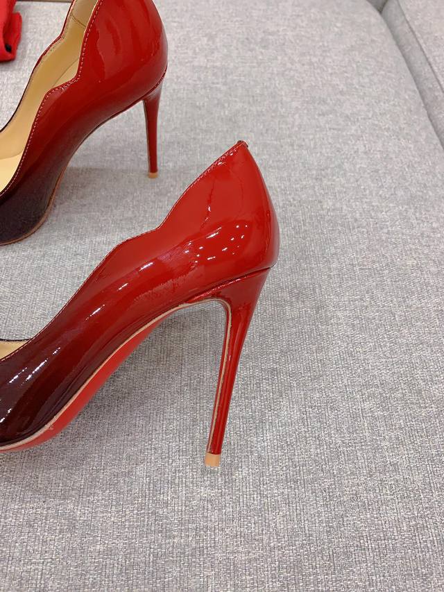 出厂价 Christian Loubouti* 经典波浪边红底高跟鞋 流畅的曲线勾勒曼妙风情 尽显性感风姿 万年经典款 鞋面牛漆皮 内里垫脚羊皮 原版进口AR1