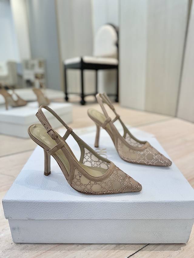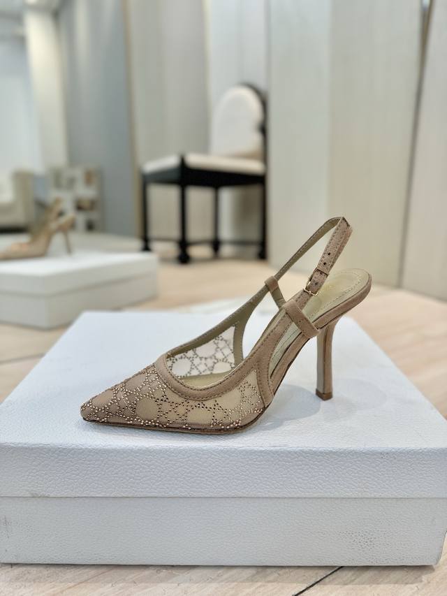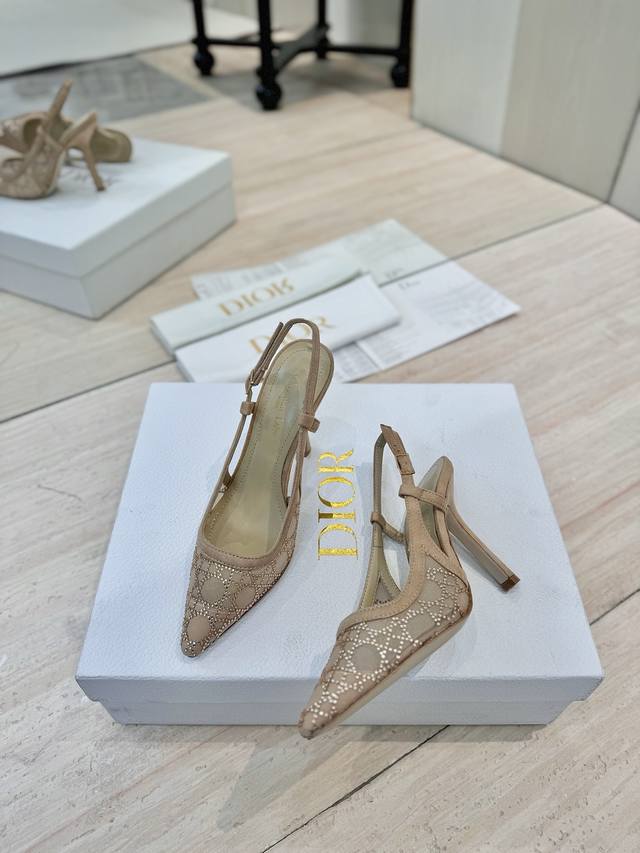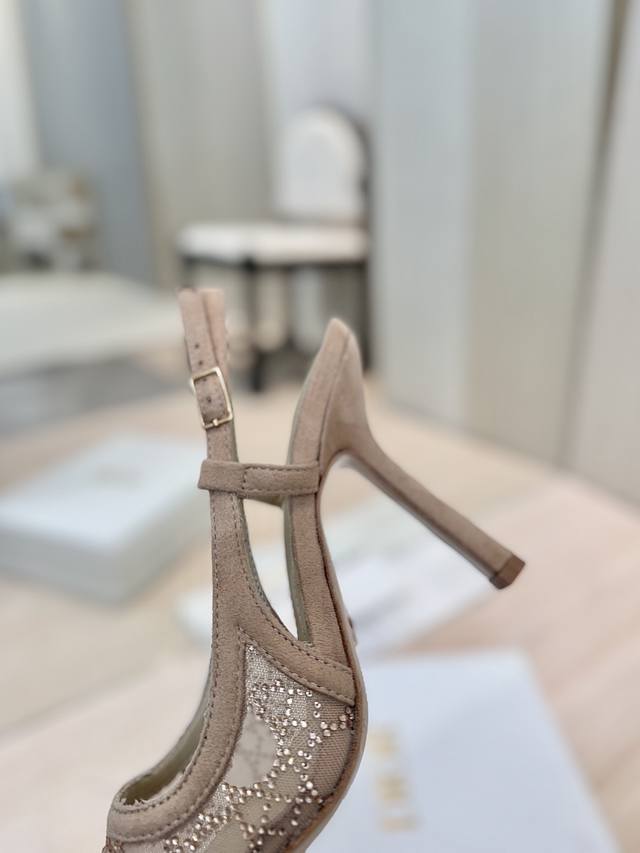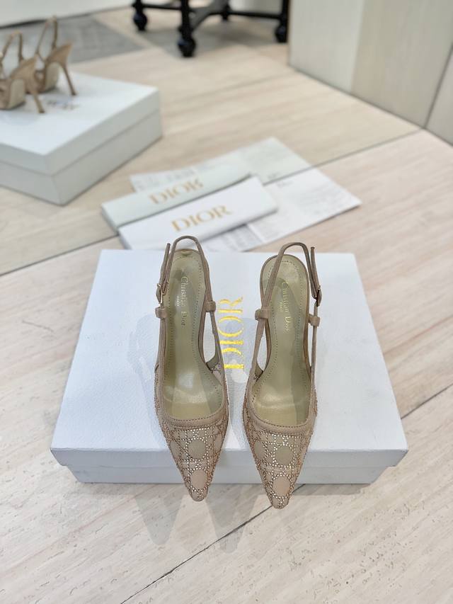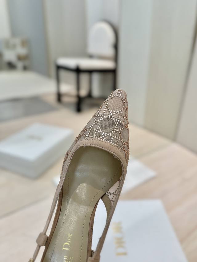 Dior 迪奥 2025春夏走秀新款bling...bling...水晶鞋 Capture系列高跟女鞋 明星同款水钻方头藤格纹图案猫跟拖凉鞋 市面顶级高端版本 独家发售