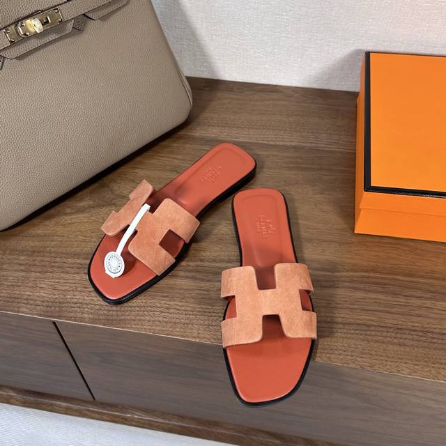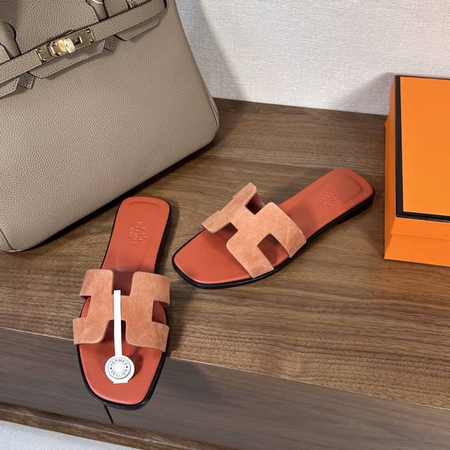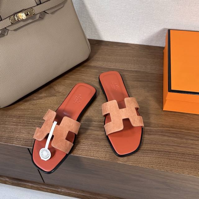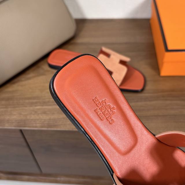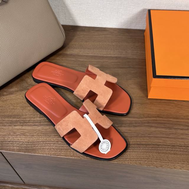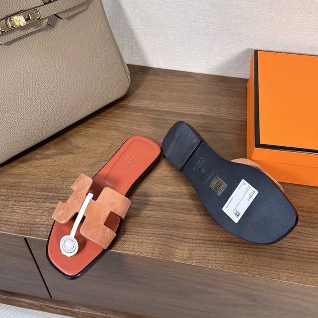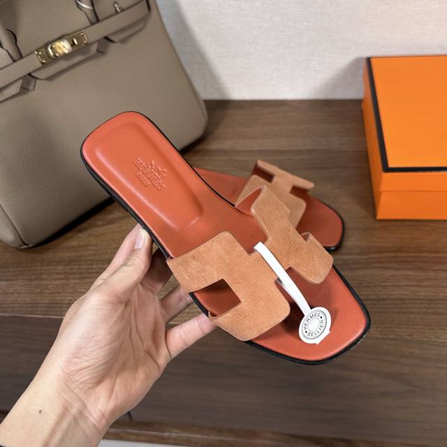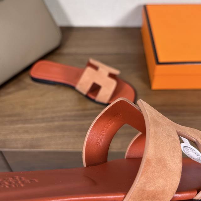 Hermes 爱马仕H拖鞋Oran凉鞋系列 时尚又百搭 超级舒服 每个细节都做到极致 原版麂皮 原版1:1独家私模鞋面 原版真皮沿条大底