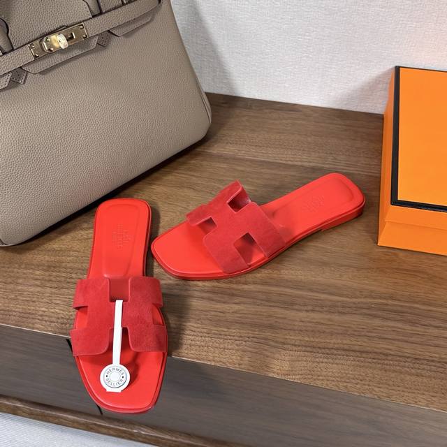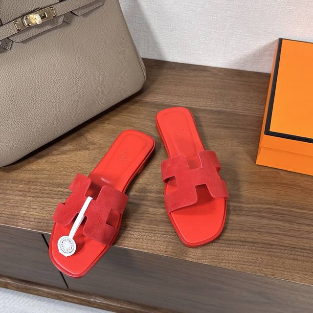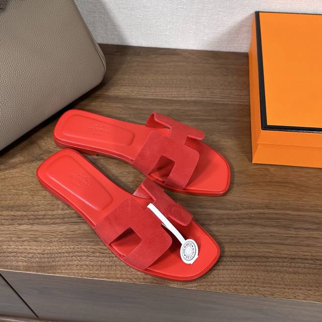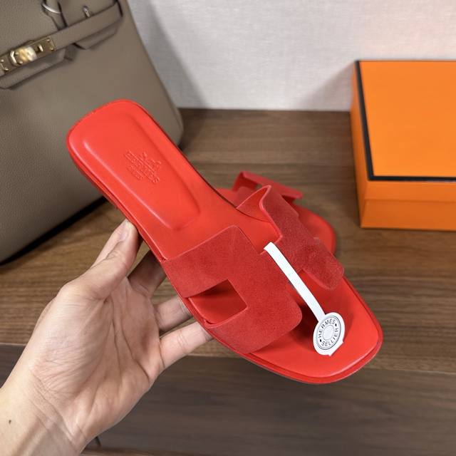 出厂价 Hermes 爱马仕H拖鞋Oran凉鞋系列 时尚又百搭 超级舒服 每个细节都做到极致 原版麂皮 原版1:1独家私模鞋面 原版真皮沿条大底 包装: 每对鞋