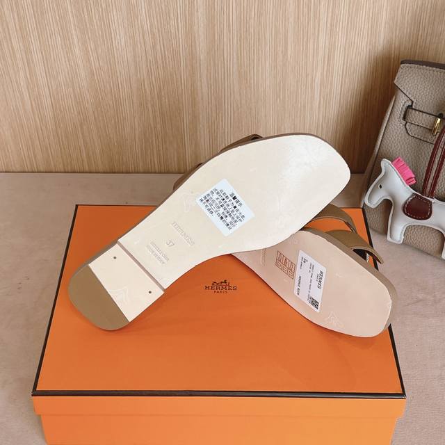 出厂价 Hermes 爱马仕H拖鞋Oran凉鞋系列 时尚又百搭 超级舒服 每个细节都做到极致 原版swift小牛皮 原版1:1独家私模鞋面 原版真皮沿条大底 鞋