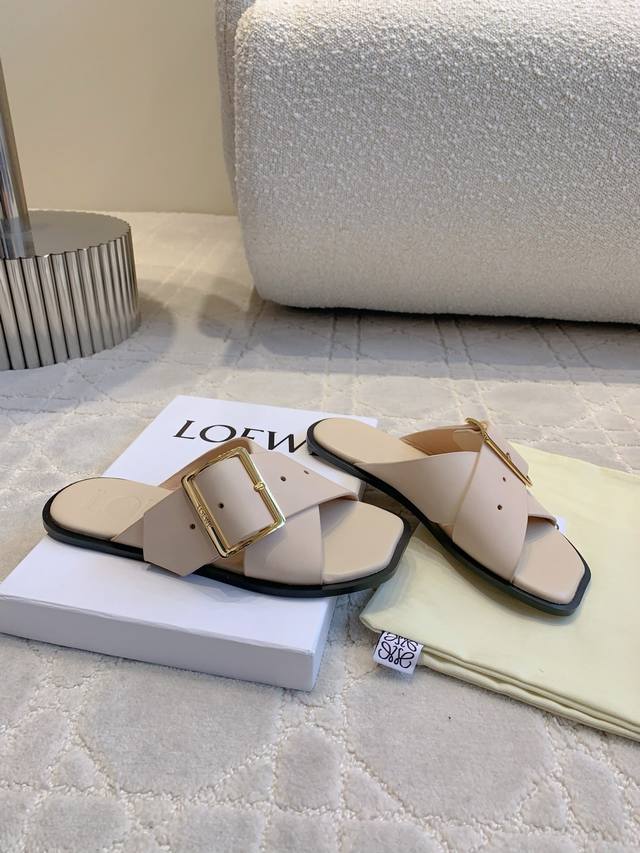 出厂价 Loew*新款交叉带搭扣拖鞋 高级又耐看 上脚超好看 随意皆可搭配 经典百搭款 鞋面牛皮 内里垫脚羊皮 意大利真皮大底 尺码35-39 40 41定做