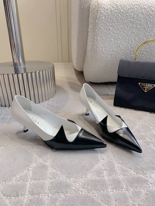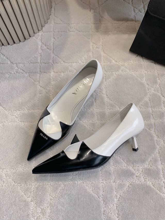 出厂价 Prad*新款尖头拼色小跟单鞋 多巴胺配色太好看啦 时尚界久违的极简之美 时髦又精致 日常穿出高级感 鞋面牛皮 内里垫脚羊皮 意大利真皮大底 跟高5cm