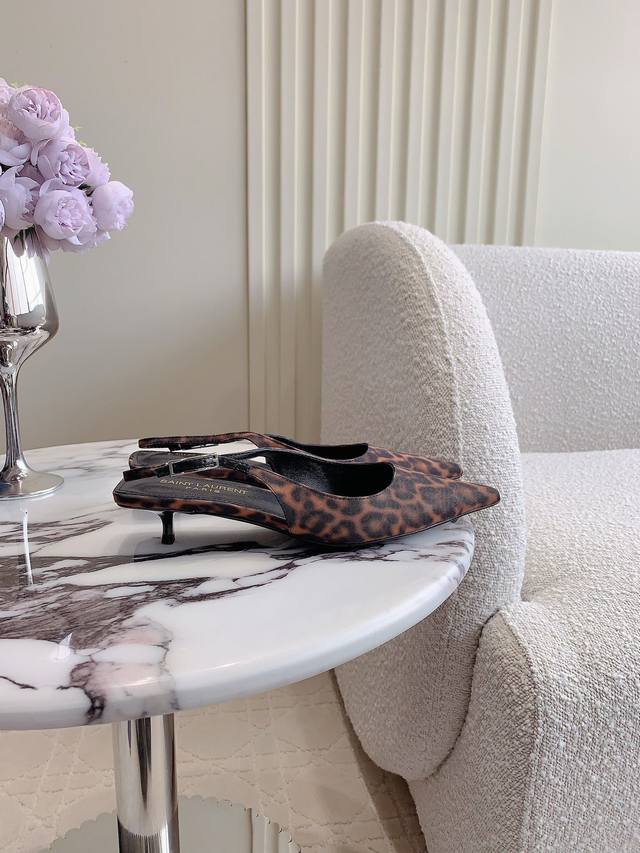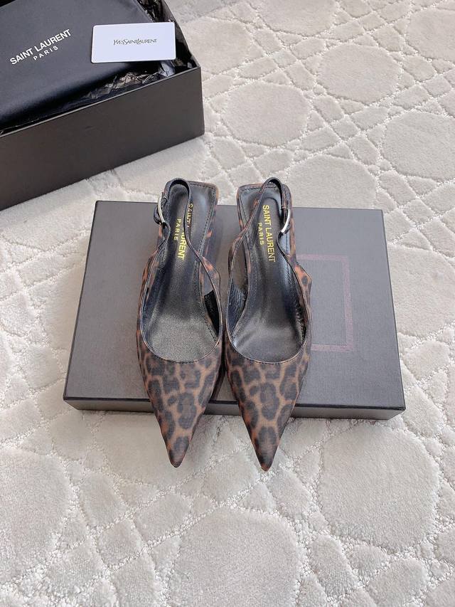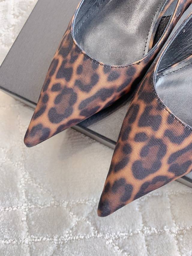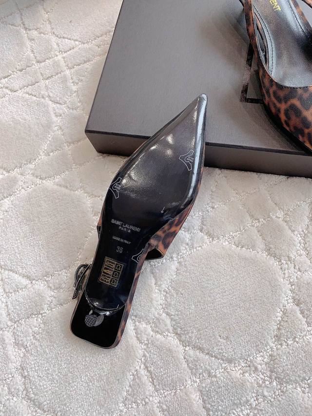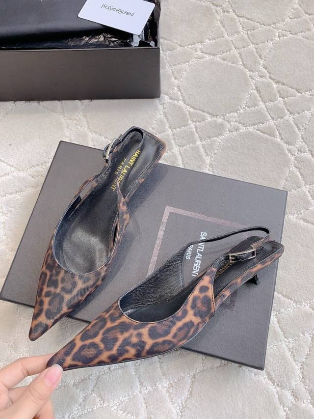 SAINT LAUREN* YSL 杨树林新款豹纹系列尖头后空小猫跟鞋 小姐姐的美丽尤物高跟鞋 优雅迷人性感 女人味十足