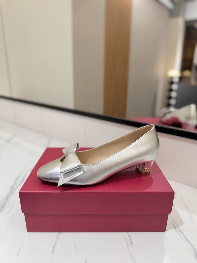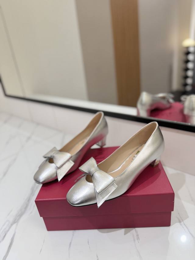 / 出厂价: VALENTINO华伦天奴经典2025春夏VLOGO SIGNATURE蝴蝶结圆头单鞋鞋型线条流畅.版型超赞上脚舒适.显瘦.拉长腿部线条鞋面:牛皮内里