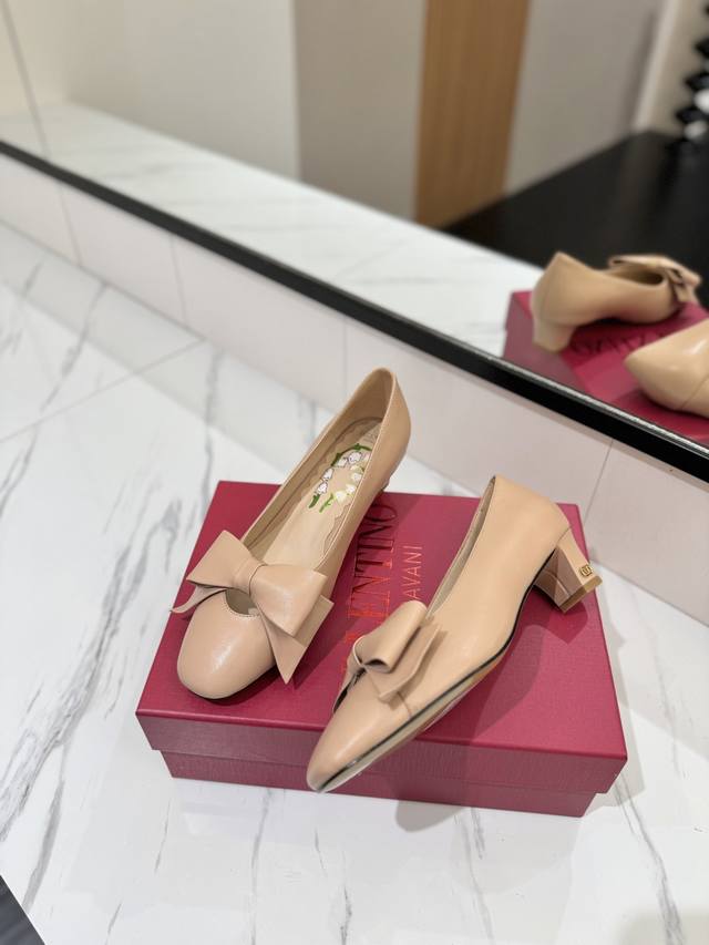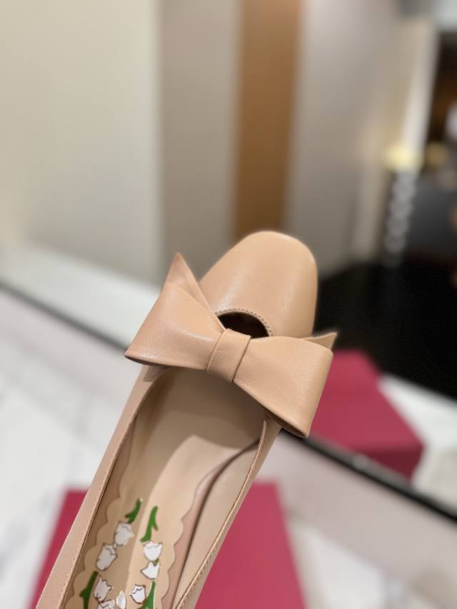 / 出厂价: VALENTINO华伦天奴经典2025春夏VLOGO SIGNATURE蝴蝶结圆头单鞋鞋型线条流畅.版型超赞上脚舒适.显瘦.拉长腿部线条鞋面:牛皮内里