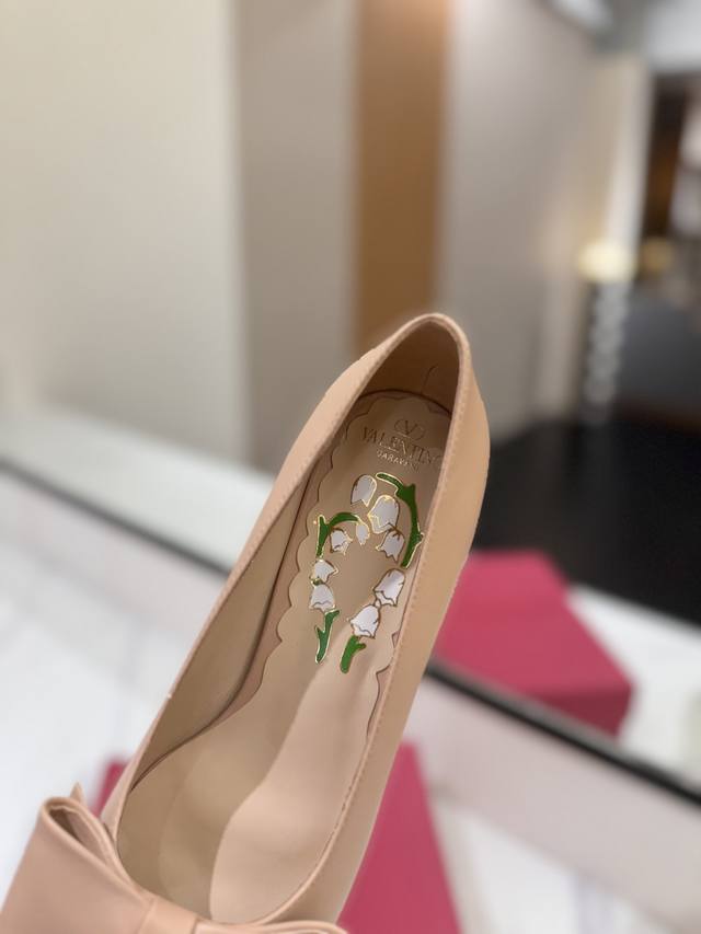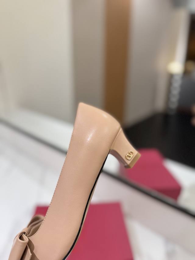 出厂价: VALENTINO华伦天奴经典2025春夏VLOGO SIGNATURE蝴蝶结圆头单鞋鞋型线条流畅.版型超赞上脚舒适.显瘦.拉长腿部线条鞋面:牛皮内里