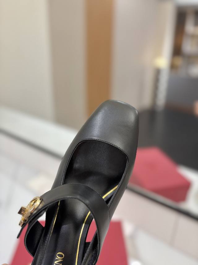 出厂价: VALENTINO华伦天奴 最火爆新品玛丽珍融入粗跟设计简约舒适之余,拉长腿部线条,饰品以金色VLogo旋钮,演绎出时髦新高度完美复刻