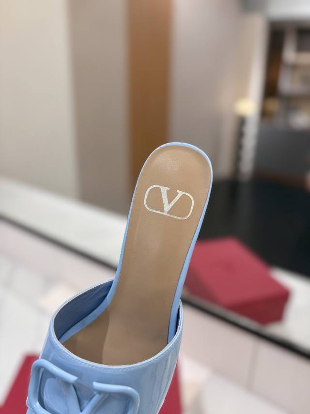 出厂价: VALENTINO华伦天奴 最火爆新品粗跟6.0V扣拖鞋最新logo饰扣 简单百搭款简直是夏天时髦巅峰原版复刻鞋面:漆皮,亚皮大底:意大利真皮大底跟高